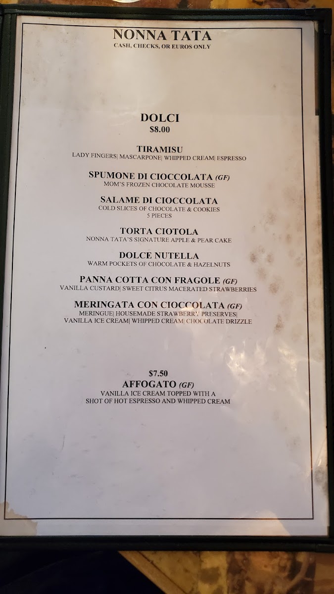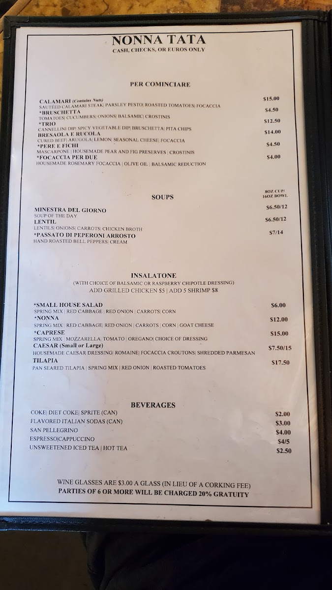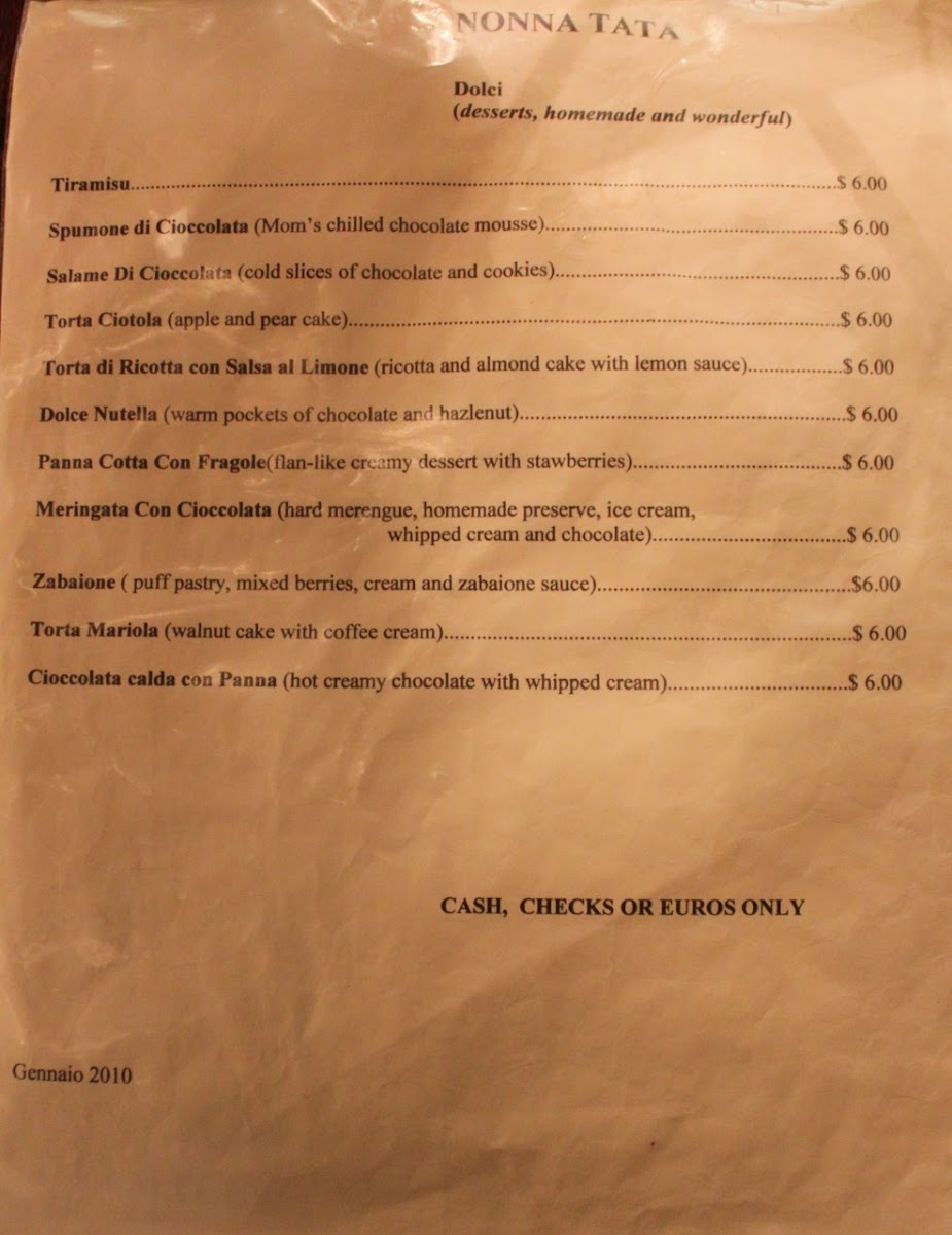 Nonna Tata Menu